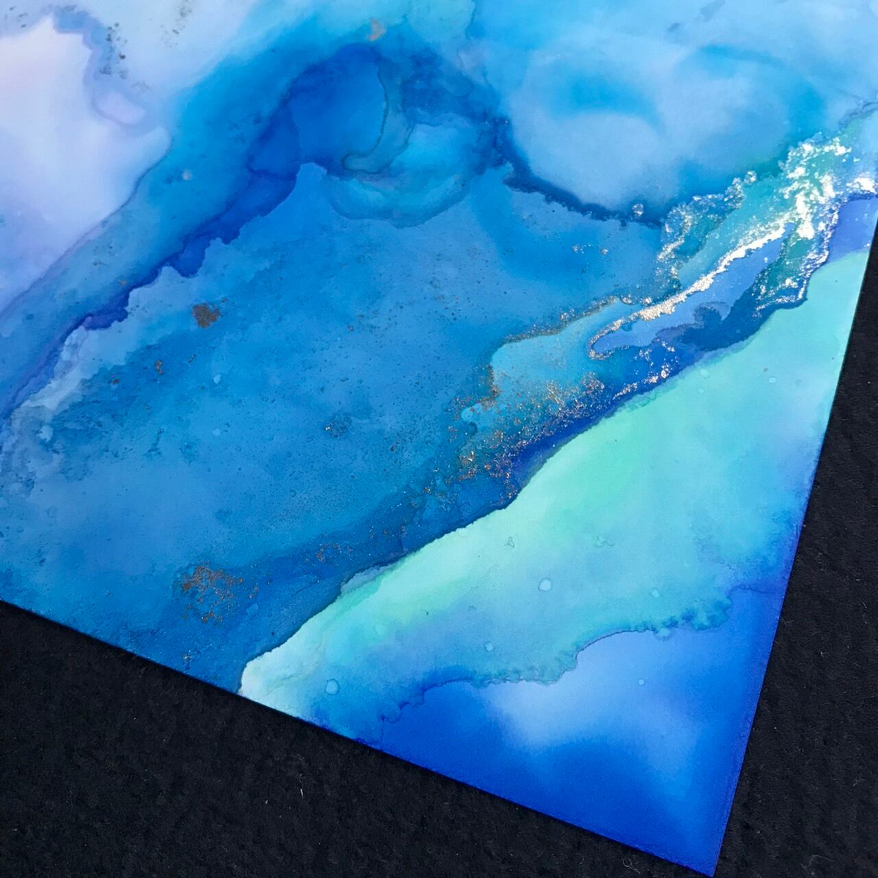 海・ビーチをイメージさせるアルコールインクアートデザインのTシャツです。