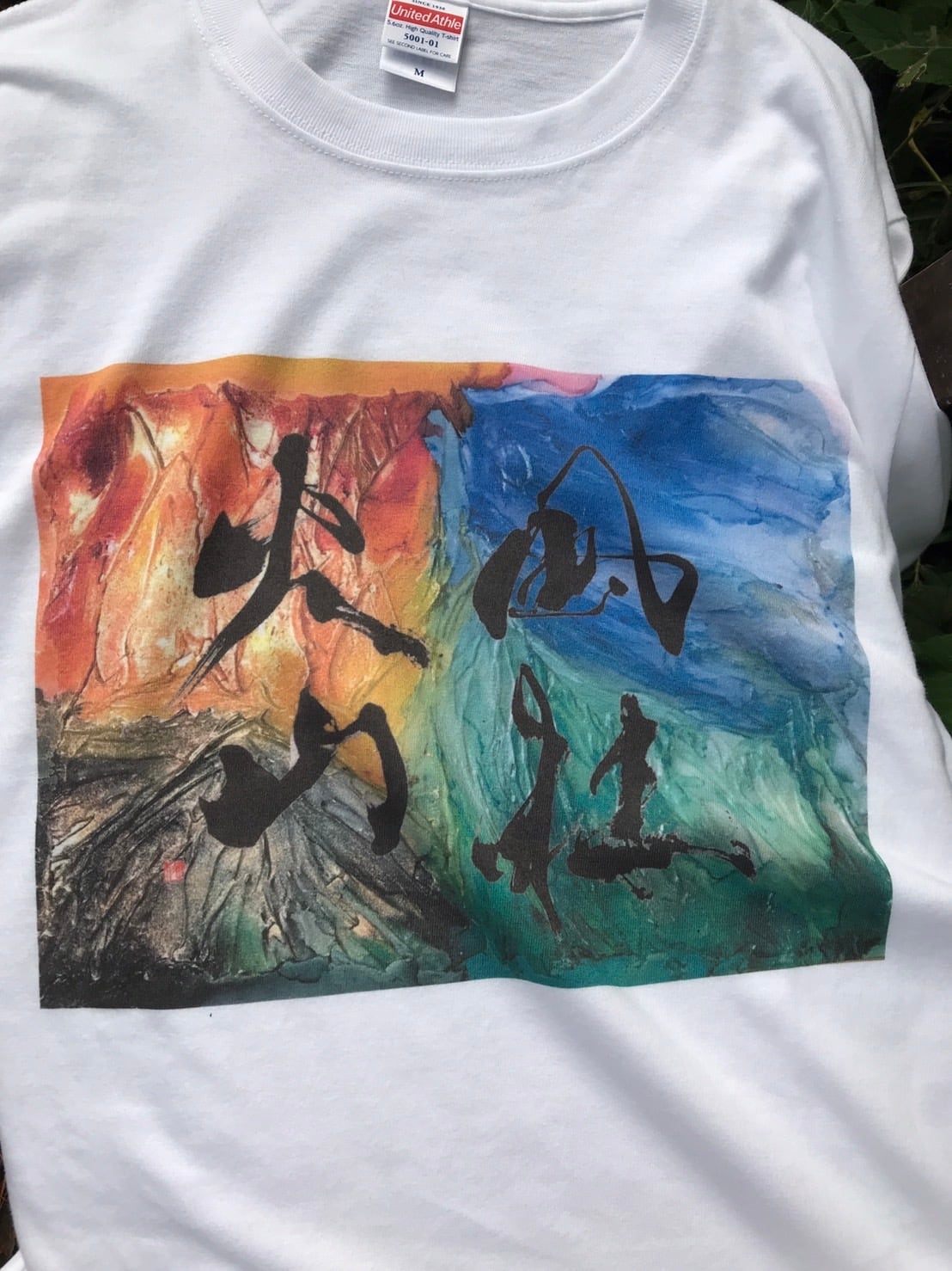 コロナ禍の最前線で戦う医療従事者支援のためのチャリティ企画を記念して、同じく自身の作品販売を通じてチャリティを行っている書家・渡邊るりこ様の”風林火山”の書と、そこからイメージしたテクスチャーインクアート作品との合作アートTシャツを発売します。
